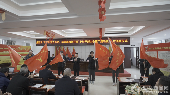 會議組織觀看了鹿西2023年發展成果專題片;集體學習了洞頭區“強城行動開新局海上花園在行動”動員大會精神;通報了省、市、區級以上榮譽,表彰了2023年度考核優秀村居、優秀干部、鄉級先進工作者;頒發了鹿鳴獎、群眾創新獎、宣傳達人獎等特別人才獎;舉行了6大戰隊授旗儀式,鄉分管領導擔任戰隊隊長,并在會上作攻堅表態發言,6大戰隊包括鹿東片區開發專班、鹿西片區提升專班、旅游攻堅創優專班、黃魚產業扶持專班、重點項目攻堅專班、民生優享提升專班等,33項年度任務清單內容涵蓋產業發展、重點項目建設、教育、旅游、交通、民生等重點板塊,全鄉上下精銳盡出、全員出戰,堅決以更好的成績回應鹿西群眾的熱切期盼,戰旗獵獵,奔向戰場!