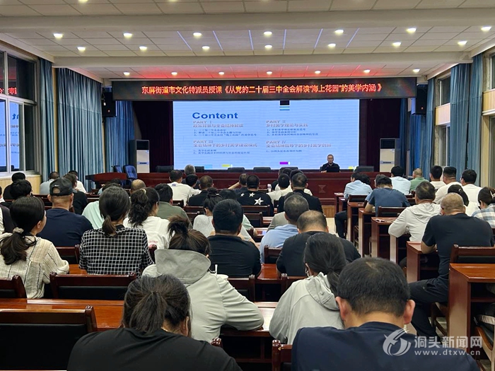 洞頭網(wǎng)訊(通訊員 江慧盈)為深入學習貫徹黨的二十屆三中全會精神,8月19日,溫州市文化特派員溫州大學美術(shù)與設(shè)計學院副教授鄭敬玉在派駐東屏街道開展黨的二十屆三中全會精神宣講。