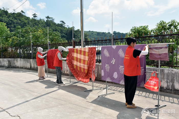 在烏仙頭村村委會旁的“暖心洗衣房”,這里環境干凈整潔,小巧精致。志愿者們正在晾曬剛剛洗完的被罩。