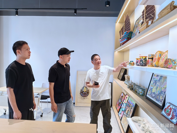 黃昭勇告訴記者,洞頭漁民畫是溫州地區(qū)特有的一種民間美術(shù)形式,反映了漁民對于當(dāng)下美好生活的喜悅與向往。經(jīng)過二十幾年的發(fā)展,如今的洞頭漁民畫在全國農(nóng)民畫界享有很高的聲譽(yù),吸引了不少游客前來基地游覽欣賞。