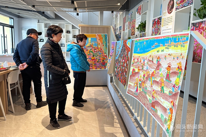 老人們穿梭在畫作之間,不時(shí)在心儀的作品前駐足停留。有的三兩成群,低聲交流著畫作中的精妙之處,分享彼此的感悟與體會;有的則獨(dú)自佇立,眼神專注,沉浸在畫作所描繪的意境之中,感受著藝術(shù)帶來的獨(dú)特魅力。整個(gè)展廳內(nèi),濃厚的文化氛圍撲面而來,大家都深深陶醉在這極具漁家特色的藝術(shù)氛圍里。