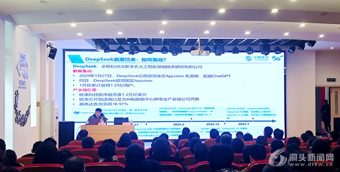 洞頭網(wǎng)訊(通訊員 張琦彥)2月26日上午,由區(qū)大數(shù)據(jù)管理中心主辦的2025年第一期“洞頭大數(shù)據(jù)講壇”暨DeepSeek專題培訓(xùn)在市民中心多功能廳舉行。本期以"AI與DeepSeek技術(shù)應(yīng)用"為主題的專場培訓(xùn),吸引了全區(qū)各機關(guān)部門、企事業(yè)單位100多人參加。