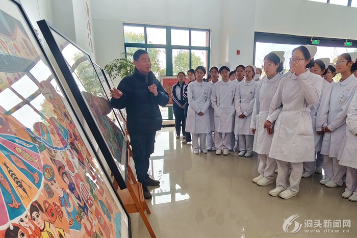 一幅幅精挑細選過的漁民畫作品有序陳列著,在聽取專業的講解后,溫州護士學校的師生們紛紛表示,對洞頭漁民畫有了更加系統的認識,也想來洞頭探尋一番,體驗漁家生活和風情。