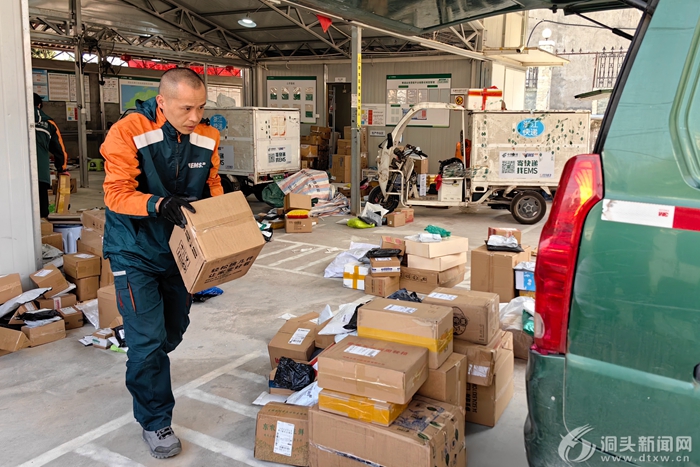 在中國郵政洞頭分公司的快遞分揀現場,快遞員周鵬鵬正認真專注地忙活著:卸車、分揀、查看包裹郵件有無破損、核對郵件信息,一系列常規的前期工作完成后,他再將地上的包裹搬起疊裝進投遞車輛里,準備開始一天的派送。