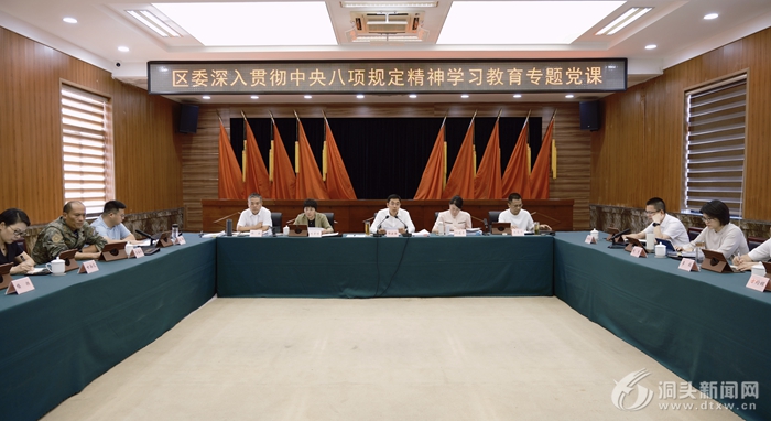 洞頭網訊(記者 余佩遙 洪建棟)8月13日下午,區委開展深入貫徹中央八項規定精神學習教育專題黨課,區委書記郭云強以“把握‘三層邏輯’深化‘五個堅持’以作風建設新成效開創海上花園建設新局面”為主題,為全區黨員干部講授專題黨課。