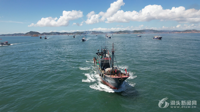 海風輕拂,裹挾著大海的咸腥氣息。遠去的漁船在海面上留下一道道長長的航跡,承載著洞頭漁民對美好生活的向往與憧憬,駛向深藍,開啟新的耕耘之旅。